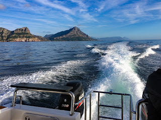 rounding Cape Point, heading to sea, and miles later catching up with a fishing boats |