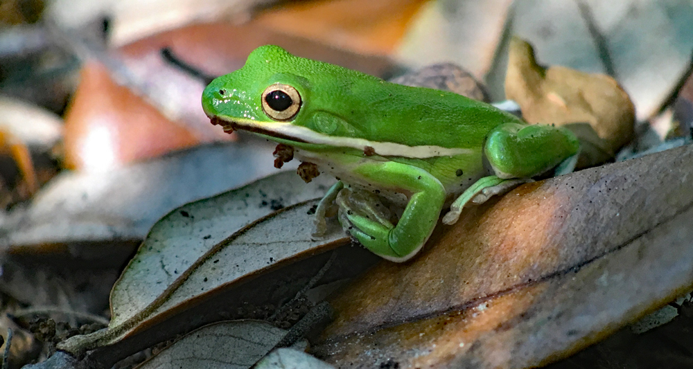 Storms on the Yucatan side of the gulf apparently were holding birds back so the birding remained slow. What's considered "slow"? Any day a field trip count of species seen is out numbered by the number of birders is a slow day. Specially when the highlight of a field trip turns out to be a green tree frog. Still, our time at High Island was worthwhile for us as we got to chat with the Tropical Birding lads, and meet fellow birders. In particular, Bridget and Tim from western Wisconsin and recently retired. They were tent camping in the High Island RV Park and this was their first visit to High Island. Unfortunately the weather wasn’t ideal to be tenting (high winds and a fair amount of rain).