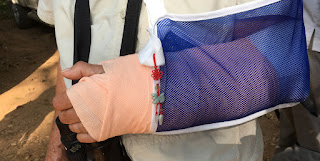 | makeshift sling; Carol, Mallee, José atChiang Dao hospital |
