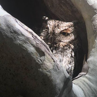 Departing on April 26 we made a stop at Cave Creek Canyon in the Chiricahua Mountains to find a Whiskered Screech-Owl roost. After helpful directions from visitor center staff (and where Carol purchased a nifty Cave Creek T-shirt) we indeed found the owl. As we were not pressed for time we also paid a visit to Rusty at Rusty’s RV where we’ve parked in our RV over the years. Then on to Las Cruces to spend a night at Frank and Paul’s home. Wonderful dinner and conversations - as always!